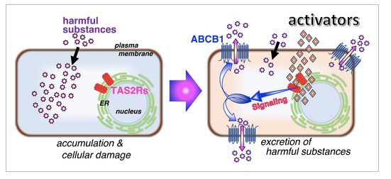 • TAS2R38 : activé par des substances telles que le houblon, la valériane  augmentant la production du transporteur ABCB1, un mécanisme de détoxification cellulaire.​