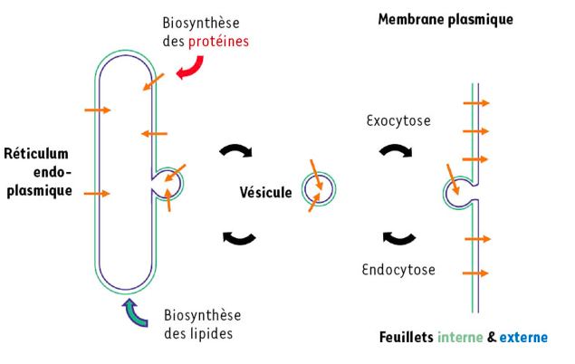 Où se trouve l’information génétique qui engendre la membrane et ses fonctions biologiques, notamment son asymétrie ? Certes, l’hérédité classique par l’ADN code les protéines ou les enzymes fabriquant les phospholipides… mais où est « codée » l’asymétrie ou, le point de départ de la synthèse d’une membrane ? Nulle part : les cellules ne néo-forment jamais de membrane ex nihilo ; elles accroissent la taille d’une membrane préexistante en rajoutant des constituants des membranes, dans le réticulum endoplasmique eucaryote ou la membrane plasmique… et l’asymétrie préexistante entretient l’asymétrie compositionnelle ! Oui, c’est la membrane elle-même qui comporte les informations requises pour son assemblage et son asymétrie… Les ensembles membranaires peuvent se fragmenter, lors de la division cellulaire ou encore, chez les eucaryotes, au gré de processus d’endoou d’exocytose. À bien y songer, toutes les membranes d’un humain adulte (sauf celle des mitochondries, voir ci-dessous) proviennent de l’élongation et de la réorganisation de la membrane plasmique de l’ovocyte… Merci Maman !